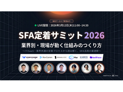 “次の一手”がデータでわかるMA+SFA一体型ツール「Kairos3(カイロススリー)」を提供するカイロスマーケティング株式会社(本社:東京都渋谷区、代表取締役:佐宗 大介、以下「当社」)は、株式会社openpageが主催するオンラインカンファレンス「SFA定着サミット 2026|業界別・現場が動く仕組みのつくり方 ~IT/SaaS・業界共通の営業プロセスから読み解く、SFA活用の最適解~」に、当社取締役 COO 白井 則行が登壇することをお知らせします。