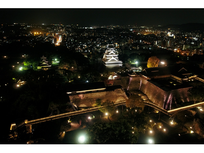 夜の熊本城(ドローン撮影)