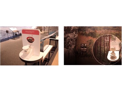 シジミ汁(左)、マツタケ入りすき焼き(右)の「におい体験」展示(B展示室)