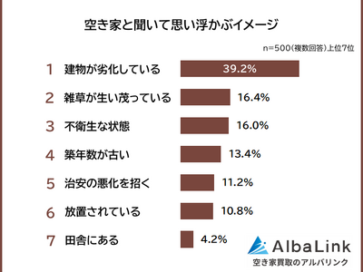 https://albalink.co.jp/realestate/ )は、全国の男女500人を対象に「空き家と聞いて思い浮かぶイメージ」についてアンケート調査を実施しました。