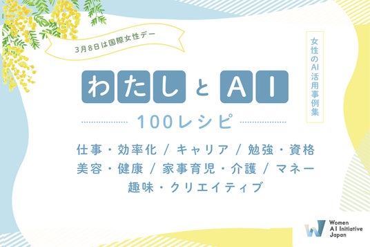 一般社団法人Women AI Initiative Japan(所在地:東京都渋谷区、代表理事:國本 知里、以下、WAIJ)は、3月8日(日)の国際女性デーに合わせ、女性の100通りの生成AI活用事例集『#わたしとAI 100レシピ』を公開しました。