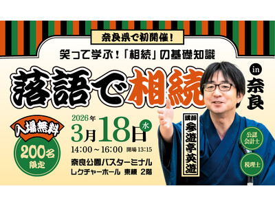 3月18日奈良で初開催!「相続セミナー」。累計3,000件超の相談実績を持つ税理士が落語で解説