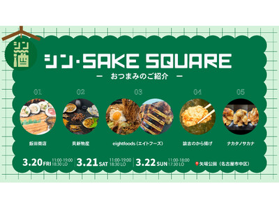 愛知県酒造組合、岐阜県酒造組合連合会、三重県酒造組合、ZIP-FMは、東海3県の地酒が一堂に会した日本酒イベント「シン・SAKE SQUARE 2026 ~シン・サケスクエア 2026~」を、2026年3月20日(金)から22日(日)の3日間、名古屋市中区の矢場公園にて開催いたします。