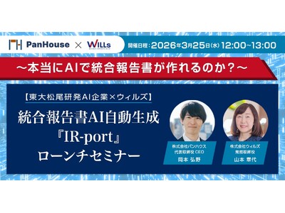 東京大学松尾研究室発スタートアップである株式会社パンハウスとウィルズが共同開発した、AI自動生成プログラム『IR-port』を初公開します。
