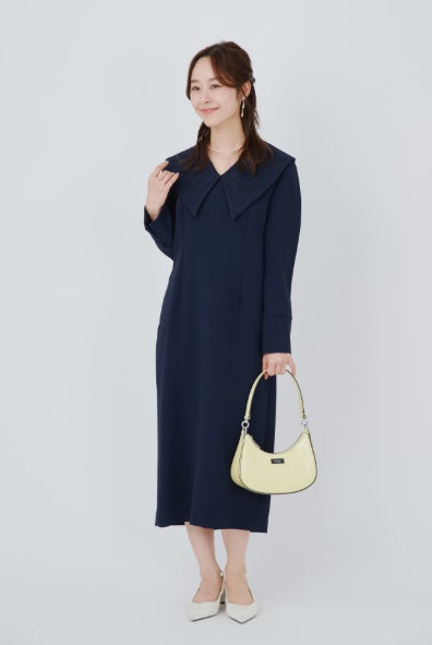 ◎大きな襟がポイント!ネイビーワンピース