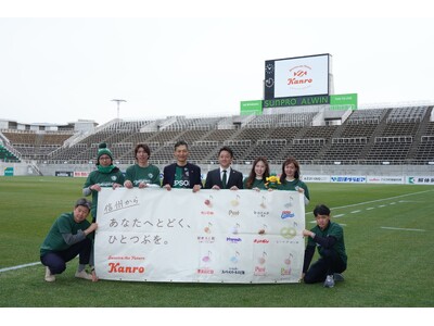 カンロ飴やピュレグミなどでおなじみのカンロ株式会社(本社:東京都新宿区、代表取締役社長 村田 哲也、以下 カンロ)は、プロサッカーチーム・松本山雅フットボールクラブを運営する株式会社松本山雅(本社:長野県松本市、代表取締役社長:小澤 修一、以下 松本山雅FC)と2026年2月よりオフィシャルパートナー契約をしたことを記念し、「バナーお披露目・キャンディ進呈式」を松本山雅FCのホームスタジアムであるサンプロアルウィンにて実施しました。