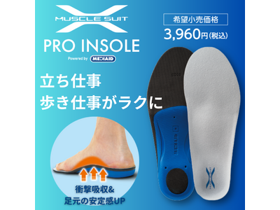 こうした背景を踏まえ、弊社はアシストスーツ開発で培ってきた身体負担軽減の知見を活かし、腰や腕のサポートに加え、身体を支える土台である足元から全身を支える新たなソリューションとして「マッスルスーツPRO INSOLE」の提供を開始いたします。