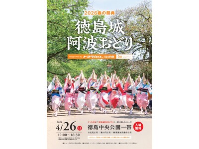 一般社団法人徳島新聞社(所在地:徳島県徳島市)は、2026年4月26日(日)に、蜂須賀家のお膝元である徳島中央公園一帯にて、2026春の祭典「徳島城 阿波おどり」を開催します(観覧無料/雨天中止の場合は4月29日(水・祝)に順延予定)。