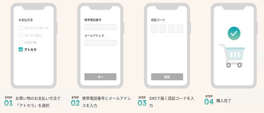 「アトカラ」は購入者が商品を購入し受け取った後に、コンビニ払い・銀行振込・口座振替で支払うことができるあと払いサービスです。