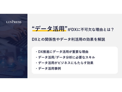 企業向けDX人材育成研修を提供する株式会社リンプレス(本社:東京都港区、代表取締役社長:三宮壮、以下、リンプレス)は、DXに取り組む企業様に向けて、『「データ活用」がDXに不可欠な理由とは?その関係性と期待できる効果を解説』と題した記事を公開しましたので、お知らせします。