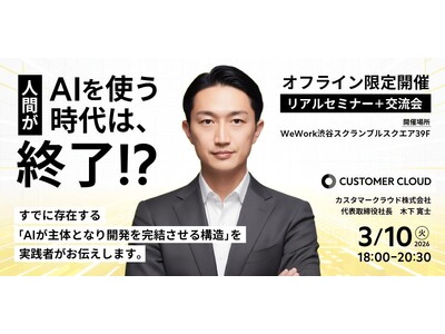 カスタマークラウド株式会社(本社:東京都渋谷区、代表取締役:木下寛士。以下「当社」といいます。)は、2026年3月10日(火)に、WeWork渋谷スクランブルスクエア(東京都渋谷区)にて、AGI時代の開発構造をテーマとしたリアルセミナー