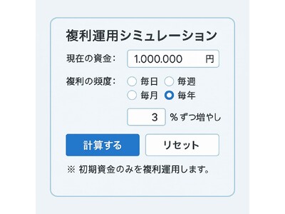 株式会社PhoenixConnect(代表:Yasuyuki Takiuchi)は、将来資産に不安を抱える一般投資家に向けて、【複利計算 シミュレーション】を公開しました。