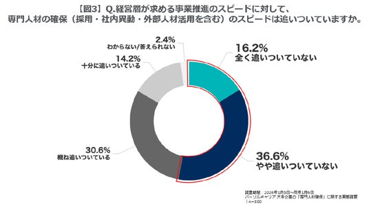 【図3】Q.経営層が求める事業推進のスピードに対して、専門人材の確保(採用・社内異動・外部人材活用を含む)のスピードは追いついていますか。