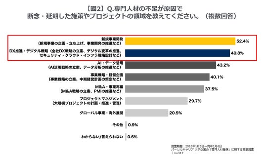 ・6割超が専門人材不足で施策やプロジェクトの断念を経験。「新規事業開発」や「DX推進・デジタル戦略」に影響