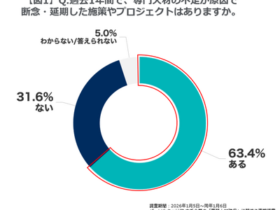 【図1】Q.過去1年間で、専門人材の不足が原因で断念・延期した施策やプロジェクトはありますか。