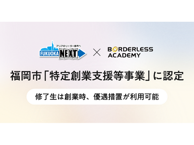 株式会社ボーダレス・ジャパン(所在地:福岡県福岡市、代表取締役CEO:田口 一成)が運営するソーシャルビジネススクール「ボーダレスアカデミー」(代表:半澤 節)は、この度、福岡市の「特定創業支援等事業」に認定されました。