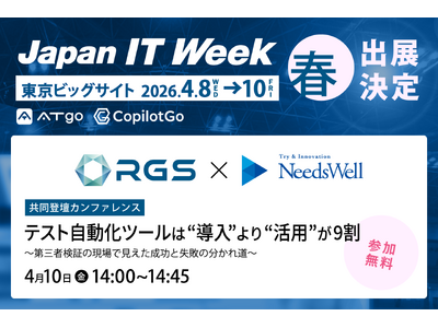 RGS株式会社(本社:神奈川県横浜市、代表取締役社長:余澤洋平)は、2026年4月10日(金)に開催される展示会「Japan IT Week【春】2026」内のカンファレンスに、株式会社ニーズウェル(本社:東京都千代田区、代表取締役社長:松岡元)と共同登壇しますのでお知らせします。