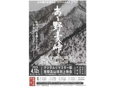 なお、今年の「野麦峠まつり」は、5月24日(日)開催予定となっており、今回の映画上映などは、「野麦峠まつり」の一環ともなっています。