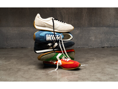 本モデルは、1970年代のランニングシューズ特有のクラシックなルックスを踏襲しながら、履き心地をアップデートした一足です。アッパーにはナイロンとスエードを採用し、特別な洗い加工を施すことで、アッパーのしわやスエードの色むら、さらにヴィンテージ感漂うタンラベルの風合いなど、まるでアーカイブが時を経て現代に現れたかのような、深みのあるディテールを表現しています。また、アーカイブから着想を得たミッドソールの配色を採用し、アッパーとの計算されたコントラストでレトロな雰囲気を演出しています。ミッドソールには、薄底ながらも2層構造でサポート性を高めたE.V.A.を採用しました。