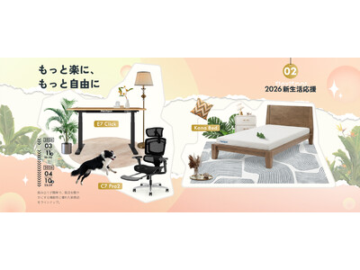 Flexispot Japan株式会社(本社:埼玉県入間郡、代表取締役:斉冰白、以下「FlexiSpot」)は、2026年3月11日(水)より「新生活応援キャンペーン第2弾」を開催いたします。本キャンペーン期間中、新作の昇降デスク、オフィスチェア、ベッドフレームが登場し、数量限定の特別価格にてお求めいただけます。