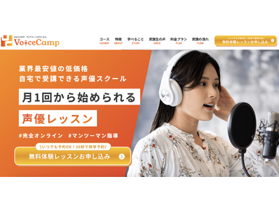 Voice Camp(ボイスキャンプ)は、オンラインで学べる声優スクールとして、声優レッスンや話し方レッスン、ナレーションレッスンなど、声に関するさまざまな学習機会を提供しています。未経験からでも声の基礎を学べるオンラインレッスンを通じて、声優を目指す方や声を活かした活動に挑戦したい方をサポートしています。