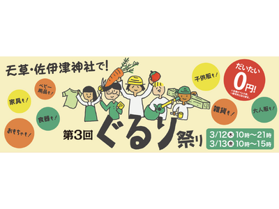 unisizeの日」に合わせて、3月12日(木)・3月13日(金)の2日間、熊本県天草市の佐伊津神社(さいつじんじゃ)にて「第3回 ぐるり祭り」を開催いたします。「ぐるり祭り」は、サイズが合わなくなった衣類や小物を捨てるのではなく持ち寄り、次の誰かへつなげる物々交換イベントで、より持続可能な社会の実現を目指す取り組みです。
