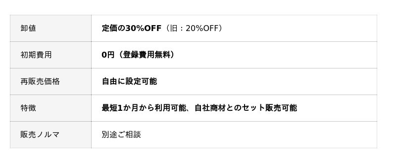 【代理店制度強化】卸値を定価の30%OFFへと改定