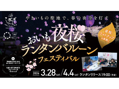 「おいも夜桜ランタンバルーンフェスティバル」を開催します。 イベントの目玉は、願いごとを書いたLEDランタンバルーンを夜空に放つランタンバルーンリリース。火を使わない 安全なランタンが春の夜空を幻想的に彩ります。会場では、やきいも食べ比べやおいもスイーツ詰め放題、ほくほく グルメ、お花見ライブ、ナイトミュージアムなど、朝から夜まで楽しめる“おいも×桜”の春イベントを展開します。