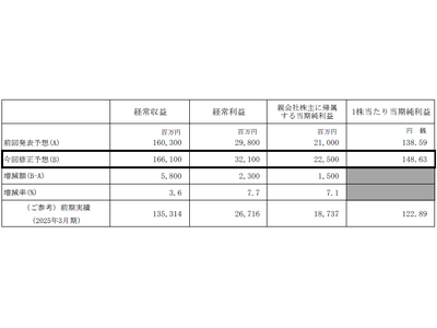最近の業績動向を踏まえ、2025年11月13日に公表した2026年3月期通期業績予想及び期末配当予想並びに2024年2月22日に公表した中期経営計画の最終年度目標を下記のとおり修正しましたのでお知らせします。