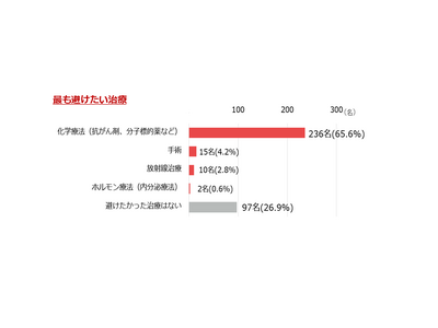 最も避けたい治療は『化学療法』が65.6% (236名)でした。