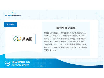 企業のお金の流れを円滑にし、新たな価値創造を促進する株式会社ROBOT PAYMENT(本社:東京都渋谷区、代表取締役執行役員CEO:清久 健也、証券コード:4374、以下「ROBOT PAYMENT」)は、請求・債権管理システム「請求管理ロボ」を導入した株式会社笑美面の導入事例を公開したことをお知らせします。