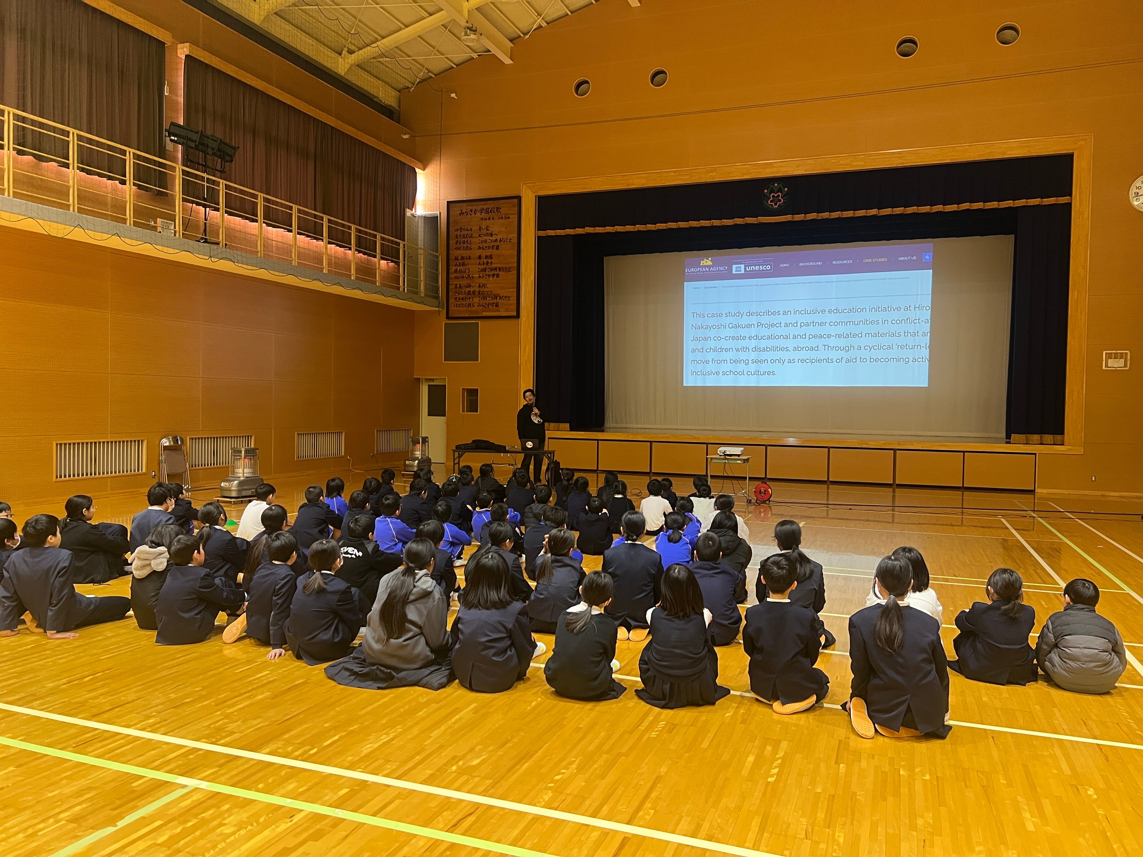 特定非営利活動法人なかよし学園プロジェクト(代表:中村雄一)は、2026年3月2日、広島県三次市の三良坂学園小中学校において、「世界とつながる学び」3R-Forum講演会を開催しました。今回の講演会では、これまで三良坂学園の児童生徒が取り組んできた海外とつながる探究活動をふり返るとともに、代表・中村雄一が、紛争や貧困の現場で実際に子どもたちの学びが活かされている様子を伝え、