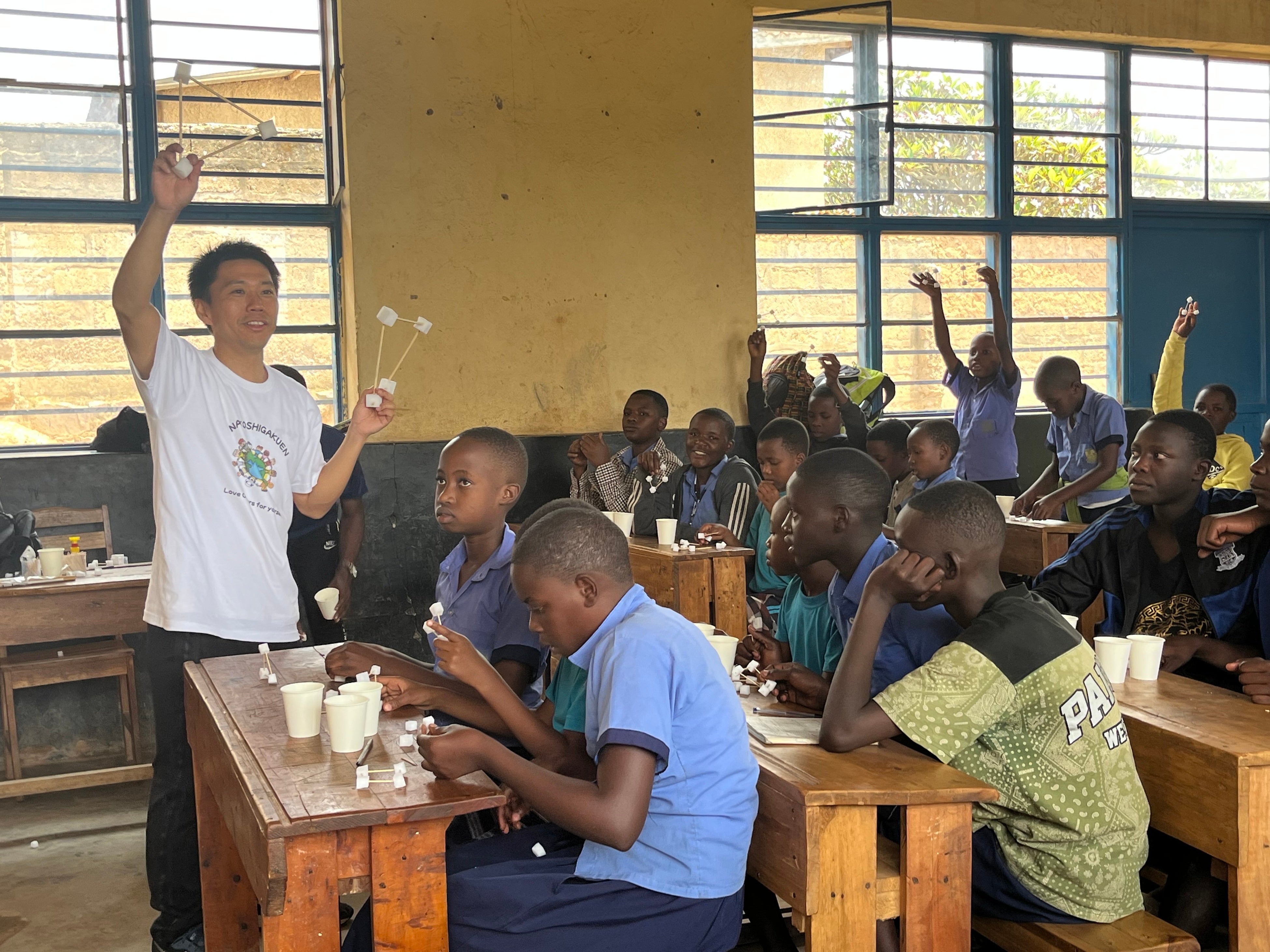 また今年度は三良坂小学校から瀬尾駿介先生がなかよし学園のメンバーとして8月のルワンダプロジェクトに参加。生徒児童たちが作成した教材を先生自ら現地で活用し、帰国後現地の様子を直に伝えています。なかよし学園はグローバルに対する敷居を下げ、誰もが世界と共に歩み、世界にアクションが起こせる環境を作る活動を行なっています。