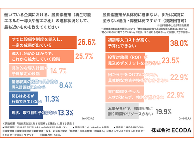 株式会社ECODA(本社:東京都渋谷区、代表取締役:平間 一也、https://ecoda-corp.com/)は、企業経営者・役員、および社内の「脱炭素・省エネ施策・設備導入」に関与している方を対象に、「脱炭素生活に対する理解と実践度」に関する調査を行いました。