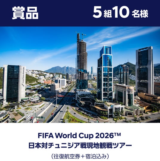特設サイトのクイズに回答してご応募いただいた方の中から、抽選で5組10名様に FIFA World Cup 2026(TM)日本代表戦観戦ツアーをプレゼントいたします。また、その他にWチャンス賞として、Hyundai x FIFAのオリジナルグッズを500名様にご用意しております。