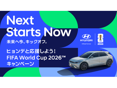 カナダ・メキシコ・アメリカの3ヶ国共催となるFIFA World Cup 2026(TM)において、ヒョンデは、「Next Starts Now(ネクスト スターツ ナウ)」をグローバルコンセプトに掲げています。これは、「これまで準備してきた未来”Next”の技術が、今まさにワールドカップの舞台”Now”」で実現する」というメッセージを表したものであり、「Next Starts Now」をグローバルコンセプトに掲げ、様々な取り組みを実施してまいります。