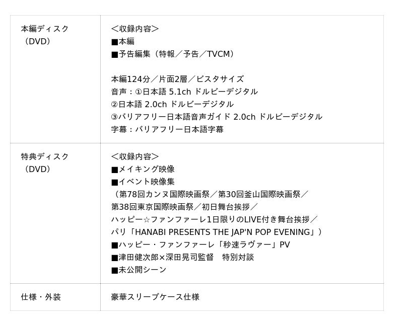 映像特典として、メイキング映像や未公開シーンなど、特典ディスクでしか見られない未出の映像に加え、海外の映画祭などのイベント映像ほか、見逃せない充実のコンテンツを収録!豪華スリーブケース仕様!!