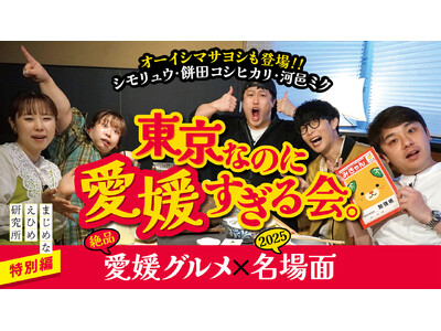 愛媛県出身の前田さんと相方・シモタさんによるお笑いコンビ・シモリュウをはじめ、愛媛を愛してやまない「松竹芸能の“松岡茉優”」こと河邑ミクさん、「松竹芸能の“カトパン”」こと餅田コシヒカリさん、さらにスペシャルゲストとして、「アニソン界のおしゃべりクソメガネ」として親しまれるオーイシマサヨシさんという豪華メンバーが登場します。【まじめえひめプロジェクト】特別編として、これまでのロケを振り返りながら、改めて愛媛の魅力や良さを東京からたっぷりとご紹介します。