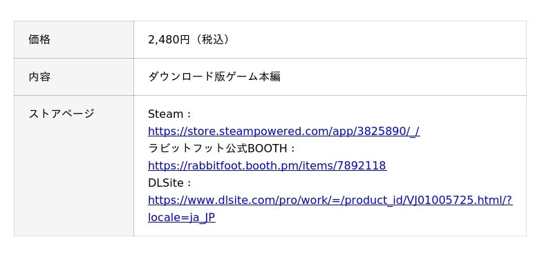 本作は、Steam、DLsite、ラビットフット公式BOOTHにてPC向けダウンロード版をご購入できます。