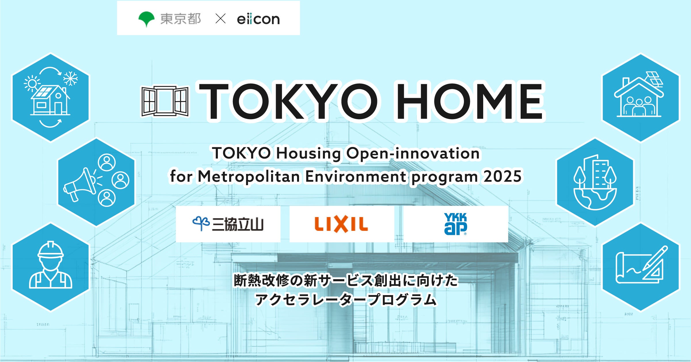 日本最大級のオープンイノベーションプラットフォーム「AUBA(アウバ)」を運営する株式会社eiicon(エイコン 本社所在地:東京都文京区後楽、代表取締役社長:中村 亜由子、以下 eiicon)は、2026年3月12日、東京都環境局とともに実施している、断熱改修の新サービス創出を目指すプログラム『TOKYO Housing Open-innovation for Metropolitan Environment program 2025「TOKYO HOME」(以下 本プログラム)』にて、参画サッシメーカー(ホスト企業)3社(三協立山株式会社、株式会社LIXIL、YKK AP株式会社)と採択スタートアップ3社による3つの共創プロジェクトの成果報告を、ベルサール六本木(東京)にて開催しました。