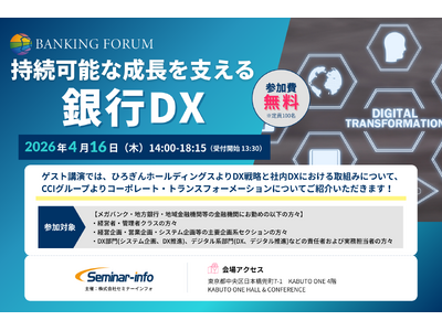 株式会社セミナーインフォ(本社:東京都中央区 代表:小西 亘)は、2026年4月16日(木)にBANKING FORUM「持続可能な成長を支える銀行DX」を開催いたします。