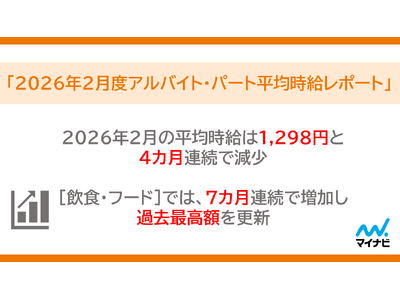株式会社マイナビ(本社:東京都千代田区、代表取締役 社長執行役員:粟井俊介)は、「2026年2月度アルバイト平均時給レポート」を発表しました。本調査は、アルバイト・パート求人情報サイト『マイナビバイト』(