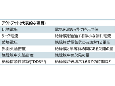※3 TDDB(Time Dependent Dielectric Breakdown、経時絶縁破壊):一定電圧下で絶縁膜が破壊されるまでの時間を多数回測定し、その結果を統計処理することで、絶縁膜の耐久性および長期信頼性を評価する試験。