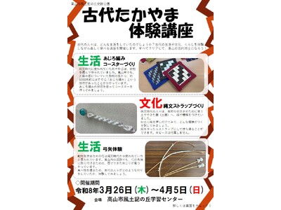 この春休みは古代の人々の人生に思いをはせながら、たかやまの古代博士を目指してみませんか?
