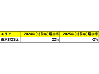 しかし2025年になると状況は変化し、再販マンションの新規売出数は前年比マイナス2%となりました。これは前年の急増に比べると、ほぼ横ばいに近い水準です。
