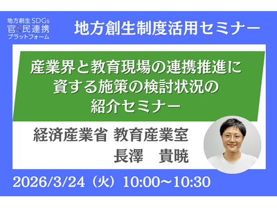 企業版ふるさと納税を活用した地域課題解決プラットフォーム「river(リバー)」を運営する株式会社カルティブ(本社:神奈川県横浜市、代表取締役:池田 清)は各省庁の出している補助金・交付金の活用方法を伝える「地方創生制度活用シリーズセミナー」として、2026年3月24日(火)に経済産業省担当者による「産業界と教育現場の連携推進に資する施策の検討状況の紹介セミナー」を開催します。