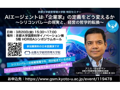 京都大学経営管理大学院主催の特別セミナー「AIエージェントは『企業家』の定義をどう変えるか ―シリコンバレーの現実と、経営の哲学的転換―」において、 弊社代表であり京都大学経営管理大学院特命教授のアニス・ウッザマンがスピーカーとして登壇いたします。