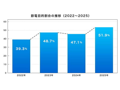2022年の39.3%から4年間で+12.6ポイント上昇しており、既設太陽光ユーザーの過半数が“節電(電気代対策)”を重視していることが明らかになりました。