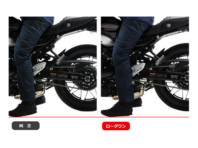 20mmダウンのローダウン量で、足つきを改善。「信号待ち」や「一時停止」といった、停車時の不意の「ふらつき」などの不安を払拭することで、ライディングに余裕が生まれることで、ストップ&ゴーが多い街中でも気疲れしない。安心して足をつける。楽に取りまわせる。落ち着いて交差点を曲がれる。また、エフェックスのローダウンキットは純正の乗り味を悪化させないよう、スタンダード車両のリアサスペンションの特性を分析し、「サスペンションの動きを活かすこと」を前提に開発。車種毎にダウン量を適切に設定することで、足つきの不安感無く、乗ってもしっかり楽しい、充実したバイクライフを実現することができます。