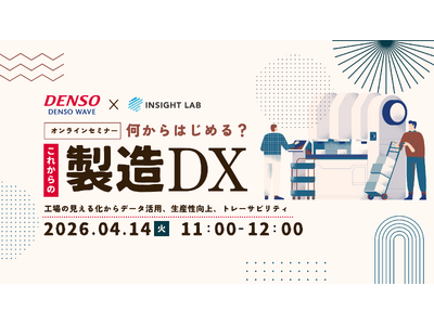 INSIGHT LAB株式会社(本社:東京都新宿区、代表取締役社長 CEO:遠山 功、証券コード:227A、以下「当社」)は、株式会社デンソーウェーブ(本社:愛知県知多郡阿久比町、代表取締役社長:相良隆義、以下「デンソーウェーブ」)との共催で、製造業向けオンラインセミナー「何からはじめる?これからの製造DX ― 工場の見える化からデータ活用、生産性向上、トレーサビリティ」を、2026年4月14日(火)11時に開催いたします。